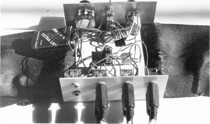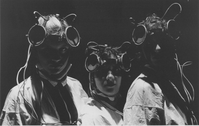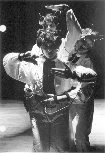 Photosynthesis was a performance with 3 dancers and percussionist. The dancers wore suits that were wired with electronic sensors, a small sound synthesizer and speakers. The sound was modified by their actions and by their position on the stage.